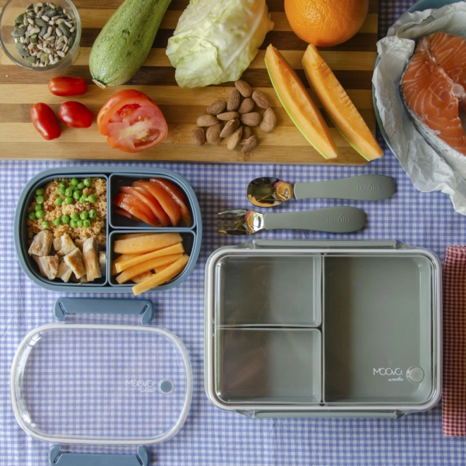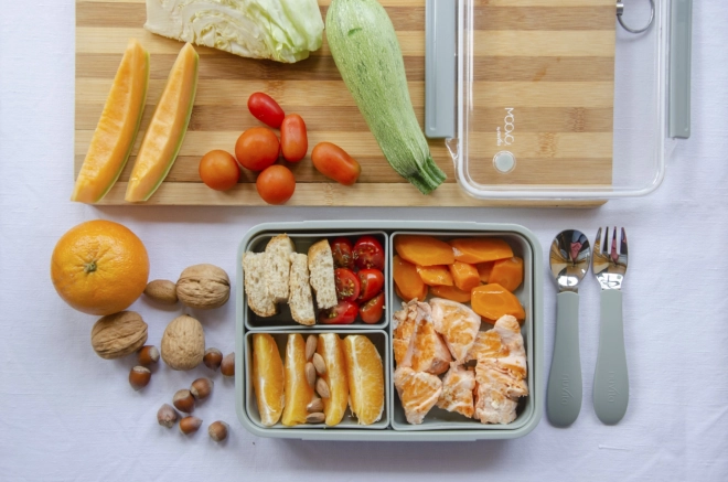 Zeer modulair systeem, ideaal voor het bewaren en vervoeren van maaltijden, tussendoortjes, fruit en groenten. De binnenlade bestaat uit 3 vakken die afzonderlijk kunnen worden verwijderd. Het deksel heeft een afdichting die het uitlopen van vloeistoffen voorkomt.