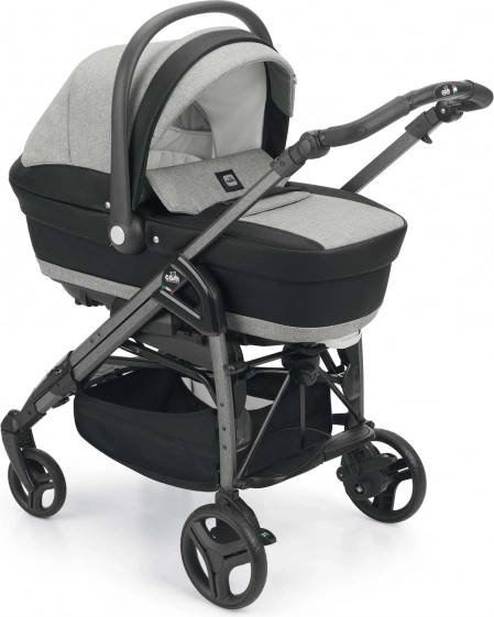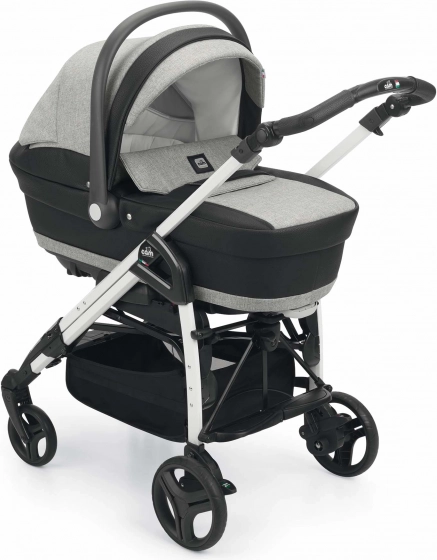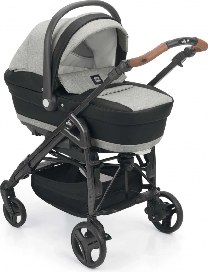 Stijlvolle kleurenset voor TECHNOGym- en ZEN-kinderwagens met alles wat je nodig hebt vanaf de geboorte tot 3 jaar. Bevat een ruime reiswieg met getextureerde stof en accenten van eco-leer, een comfortabel zitje 0–36 mnd, een praktische verzorgingstas, voetenzak en boodschappenmand. De ventilerende kap is ideaal voor de zomer; verstelbare hoofdsupport en schommelfunctie verhogen het comfort voor je baby.