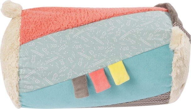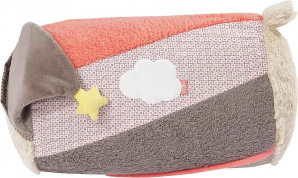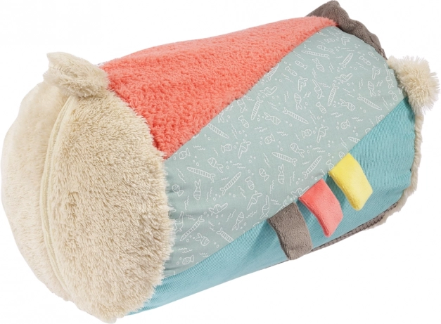 Beweging van de rol activeert de rammelaar, die het gehoor stimuleert en het kind motiveert om verder te ontdekken.