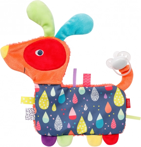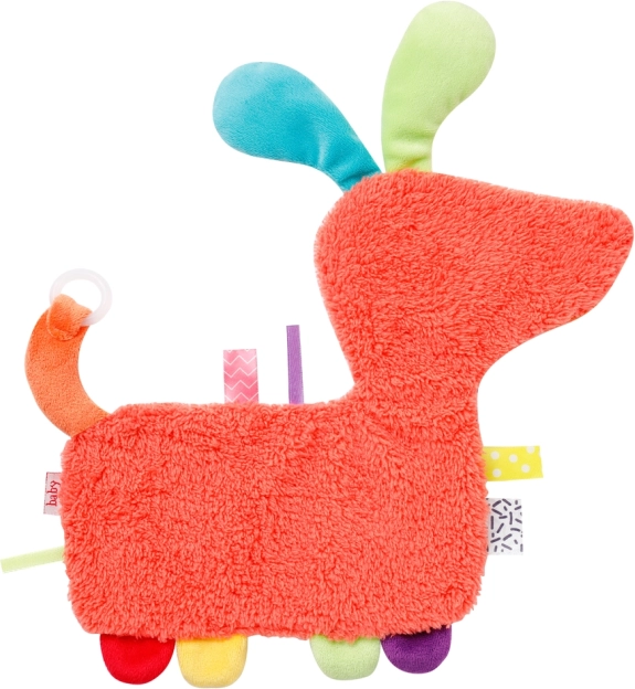 De kleurrijke, golvende hond uit de COLOR Friends-collectie wekt de nieuwsgierigheid van het kind, stimuleert het grijpen en prikkelt de zintuigen. Dankzij de mix van materialen en het stimulerende geluid van het verborgen knisperpapier wordt het nooit saai. Baby’s zijn dol op de vorm van de hond en zijn pluizige vacht om vast te pakken, aan te raken, te ontdekken en om mee te knuffelen! Het schattige hondje kan overal mee naartoe en begeleidt het kind tijdens het spelen en dromen. Praktische bevestigingsring.
