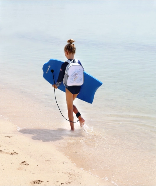 • de schouderbanden zijn speciaal ontworpen om zich aan te passen aan de rug van een klein kind. Ze zijn ook verstelbaar en aan de binnenzijde gemaakt van een ademende stof die comfort biedt tijdens het dragen.