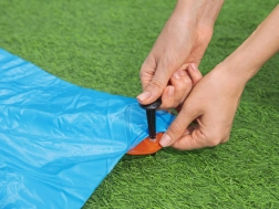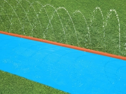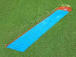 De installatie is eenvoudig. Leg de glijbaan op het gras, sluit de slang aan en geniet urenlang van waterplezier in de buitenlucht.