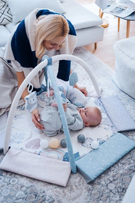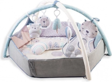 Dit speelkleed is gemaakt van duurzaam materiaal met thermische isolatie-eigenschappen en biedt comfort en veiligheid. Het gebruik van zachte pastelkleuren zorgt voor kalmte en ondersteunt de visuele ontwikkeling van het kind. Aangevuld met zintuiglijke speeltjes die de zintuigen prikkelen en speelplezier bieden.
