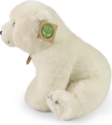 Schattige pluchen ijsbeer van 28 cm die verrast met zijn zachtheid en realistische uitstraling. Gemaakt van hoogwaardige pluche met een eco-vriendelijke vulling van gerecyclede PET-flessen, veilig zelfs voor de allerkleinsten en klaar om mee te knuffelen en te spelen.
