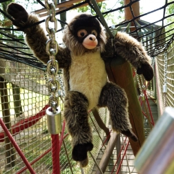 De pluchen aap is gemaakt met oog voor detail en bootst een levende aap na.