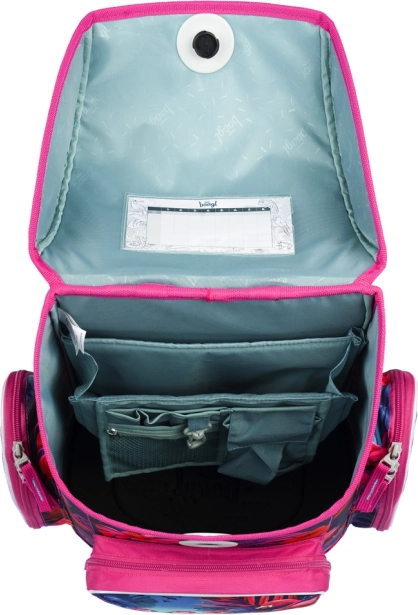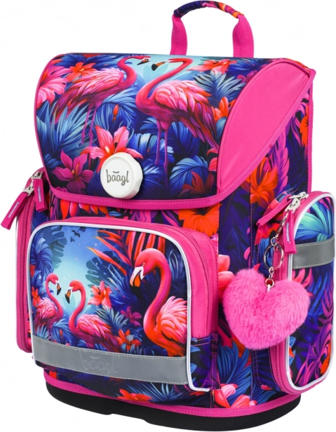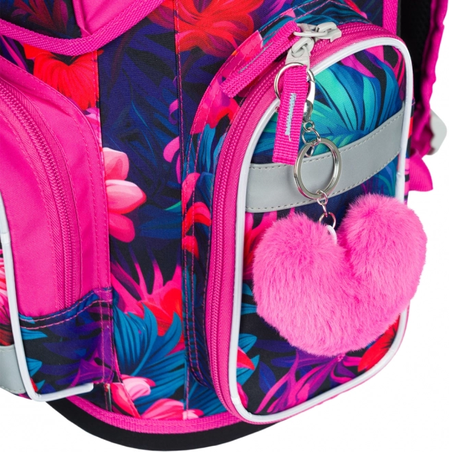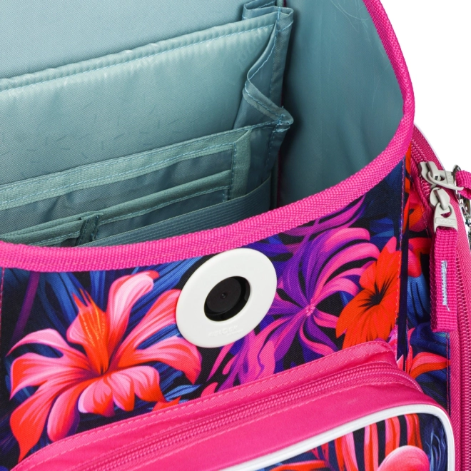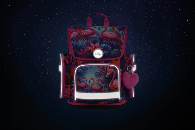 Stijlvolle en functionele schooltas met flamingo-motief, ontworpen voor kinderen vanaf groep 3. Met het ERGO ADJUSTABLE SYSTEM stel je eenvoudig de hoogte en positie van de riemen in zodat de tas perfect op de rug zit. Ergonomisch gevormde rug en volledig verstelbare schouder-, borst- en zijkompressieriemen zorgen voor comfort gedurende de hele schooldag.
