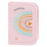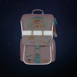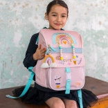 De BAAGL Zippy Regenboog schoolset in roze is een ideale keuze voor eerstejaars en jongere schoolkinderen. De ergonomische boekentas met verstevigd frame behoudt een stabiele vorm, heeft een nieuw klep-openingssysteem voor snelle toegang vanaf de schoolbank en een praktische interne organizer met elastiek voor een gelijkmatige gewichtsverdeling. Het lichte ontwerp, de reflecterende elementen en de duurzame waterafstotende materialen zorgen elke schooldag voor comfort en veiligheid.