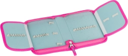 De tas wordt aangevuld met een eenlaags etui zonder inhoud en een stevige zak met karabijnhaak om aan de tas te bevestigen. Alles in een speels tropisch flamingomotief.