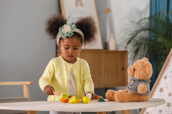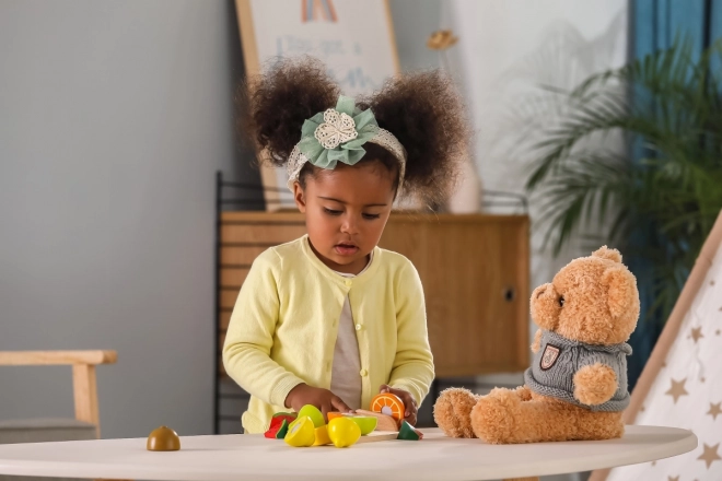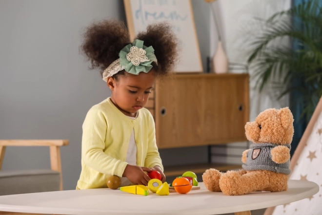 Dankzij verborgen verbindingen kan het fruit herhaaldelijk worden gescheiden en weer samengevoegd – kinderen trainen nauwkeurigheid en coördinatie op een veilige manier.