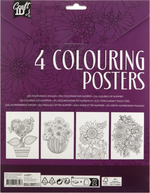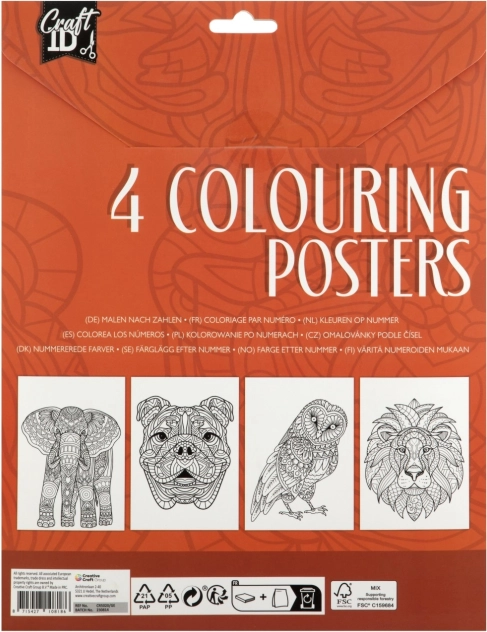 Ontdek de wereld van creativiteit met onze kleurposters van het merk Craft ID. Elk pakket bevat vier posters die je meenemen in een artistieke wereld vol fantasie. De posters hebben gedetailleerde illustraties, van bloemmotieven tot dierlijke gezichten, die wachten op jouw kleuren.