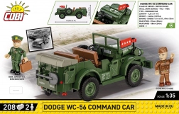 De Dodge WC-56 Command Car is een legende onder militaire voertuigen en speelde een sleutelrol tijdens de Tweede Wereldoorlog. Dit model op schaal 1:35 geeft authentieke historische markeringen uit 1944 weer en bevat speciale bouwblokken voor het iconische radiatorrooster. Het heeft draaiende wielen met rubberen banden en plaats voor minifiguren. In de doos zitten twee figuren geïnspireerd op echte historische personen: een Amerikaanse generaal en een militaire chauffeur.