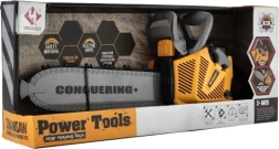 Deze kinderkettingzaag in realistische uitvoering biedt een authentieke speelbeleving – na het trekken aan de starter “start” hij, met een druk op de knop gaat het veilige bewegende blad werken en dit alles wordt aangevuld met licht- en geluidseffecten. Ideaal voor kleine liefhebbers van houtbewerking en rollenspellen.