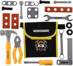 Ontdek een leuke en veilige reparatiespelervaring met deze complete kindergereedschapsset met riem. Bevat alles wat kleine klusjesmensen nodig hebben: hamer, tang, schroevendraaier, sleutels, winkelhaak, schroeven, moeren en ringen. De praktische textiele gereedschapsriem houdt alles binnen handbereik en stimuleert de ontwikkeling van de fijne motoriek, verbeeldingskracht en zelfstandigheid.