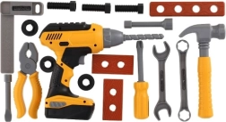 Bevat een boormachine, hamer, schroevendraaier, tang, sleutel en schroeven. Ideaal voor de ontwikkeling van motorische vaardigheden en creatief denken.