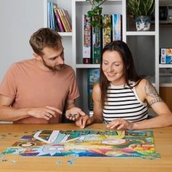 De uitzonderlijke dikte van het karton zorgt ervoor dat samengevoegde delen goed bij elkaar blijven, zelfs bij het verplaatsen. De bijgevoegde afbeelding maakt het leggen gemakkelijker. De puzzels zijn verpakt met aandacht voor het milieu – de doos is recyclebaar en alleen met stickers verzegeld.