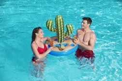 De opblaasbare drankstandaard Bestway Cactus tovert elk zwemmoment om tot een relaxte party. Zes praktische houders houden je bekers en blikjes stabiel drijvend, terwijl twee geïntegreerde koelruimtes de hele dag voor verfrissing zorgen. Het duurzame PVC en het doordachte design garanderen een lange levensduur en makkelijk opbergen.