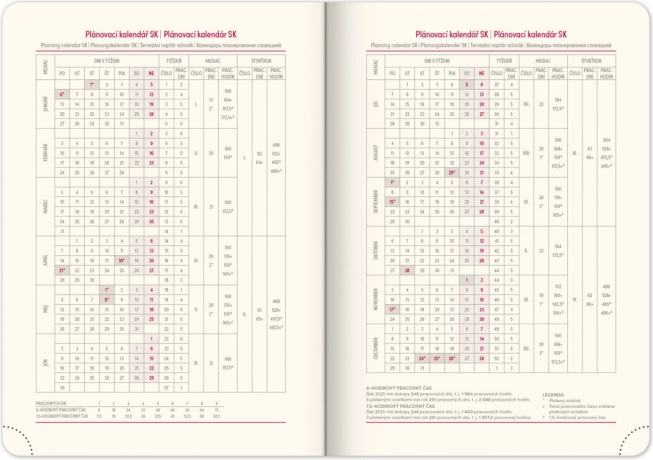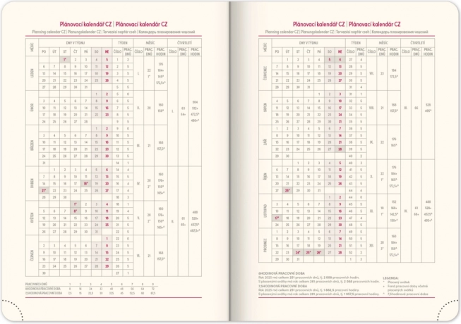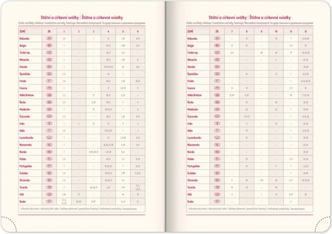 - Inclusief feestdagen van de Tsjechische en Slowaakse republieken en internationale feestdagen.