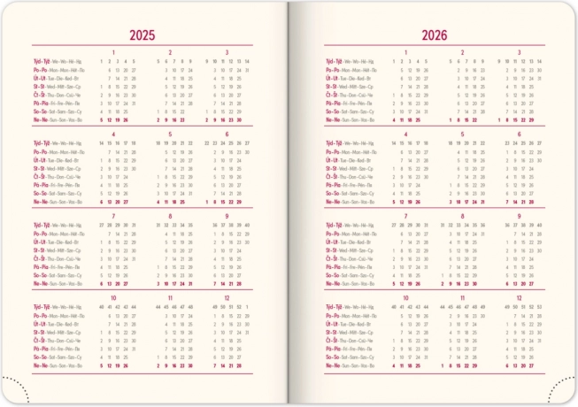 - Maandelijkse planningskalender voor de jaren 2025 en 2026.