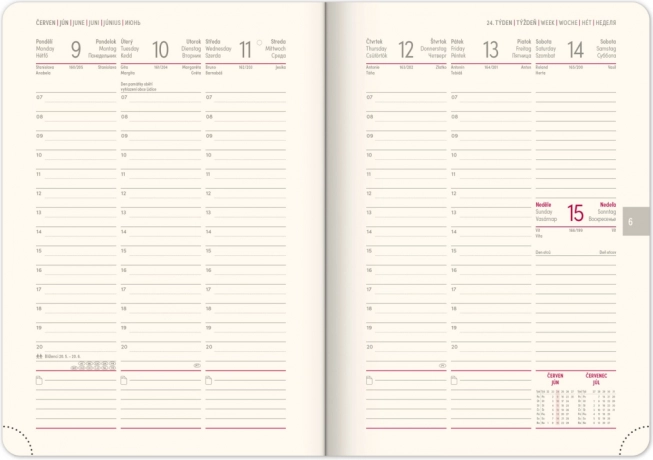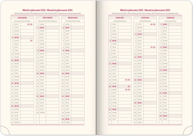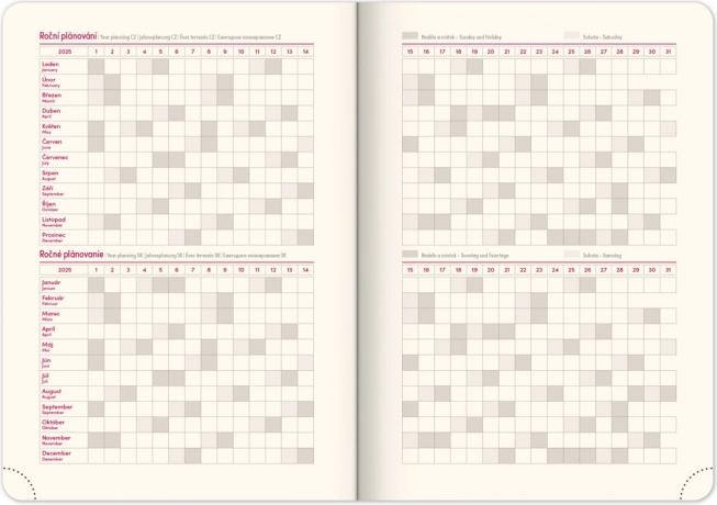 Weekagenda Notique Twill 2025 in elegante blauw-zilveren kleur is de ideale hulp voor het organiseren van uw dagen. Het biedt een overzichtelijk weekoverzicht met een Tsjechisch-Slowaakse kalender en meertalige bijschriften.