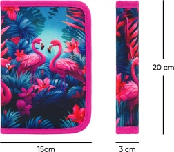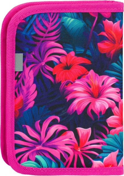De opvallende print met flamingo's en tropische bloemen in roze-blauwe tinten geeft het etui een speelse uitstraling waar kinderen dol op zijn.