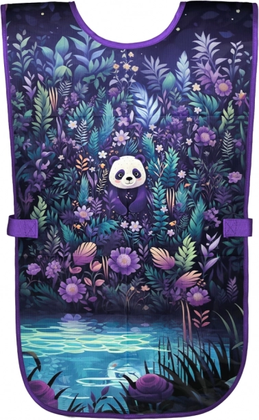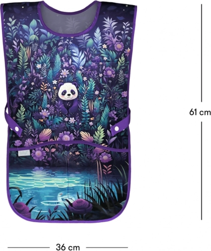 Het speelse design met een panda en vrolijke kleuren spreekt kinderen aan, terwijl de duurzame, gemakkelijk afwasbare stof T-shirt en trui beschermt tegen verf, water en lijm. Het schort is ideaal voor teken- en handvaardigheid, praktijkactiviteiten én voor knutselen en koken thuis.