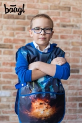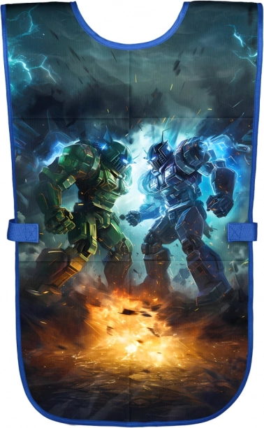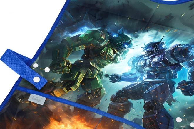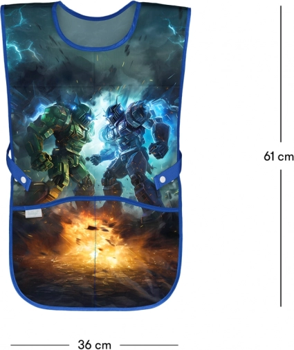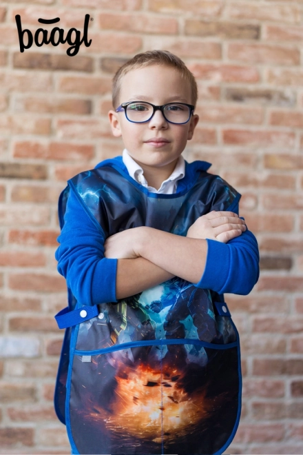 Praktisch kinderkeukenschort met robot-motief van het merk BAAGL, ideaal voor beeldende vorming, handvaardigheid en creatieve clubs. Gemaakt van afwasbaar materiaal voor eenvoudig onderhoud en voorzien van twee ruime zakken voor hulpmiddelen.