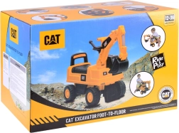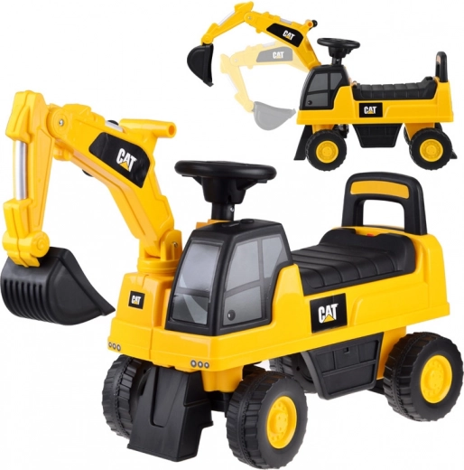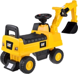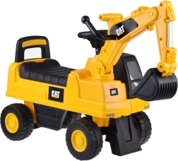 Gelicenseerd loopvoertuig graafmachine CAT voor kinderen van 1 tot 3 jaar met een bewegende bak die omhoog, omlaag en zijwaarts te bedienen is, een claxon op het stuur en een opbergvak onder de zitting. Dankzij de brede antislipwielen, rugleuning en kantelbeveiliging genieten kleine bestuurders van een veilige en leuke rit, binnen én buiten.