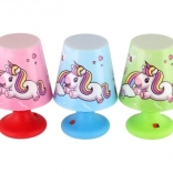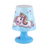 De lamp is versierd met een geïllustreerd eenhoornmotief dat een magische sfeer creëert.