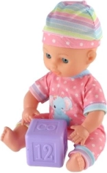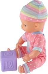 Een schattige baby met een stevig kunststof lijfje zal elke kleine mama blij maken. De pop van 25 cm is gekleed in een roze outfit en er zit ook een dobbelsteen bij om mee te spelen. Ideaal voor het ontwikkelen van fantasie en rollenspel, ondersteunt fijne motoriek en zorgvaardigheden van kinderen.