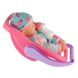 Deze schattige pop met kleurrijke outfit is een uitstekende keuze voor de ontwikkeling van empathie, fantasie en fijne motoriek. De draagmand/autostoel met robuust handvat maakt gemakkelijk dragen en veilig neerzetten van de pop mogelijk, terwijl het meegeleverde flesje authentieke zorg en voeden stimuleert.