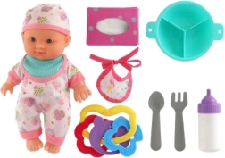 Schattige baby met een stevig lijfje die elke kleine mama blij zal maken. In de verpakking vind je praktische accessoires voor voeren en verzorgen, waarmee kinderen echte babyverzorging kunnen naspelen. Ideaal voor de ontwikkeling van fantasie en fijne motoriek bij kinderen vanaf 3 jaar.