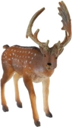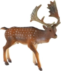 Het figuur toont het edelhert natuurgetrouw met gevlekte vacht en typische, brede schoffelgeweien – ideaal voor onderwijs en spel.