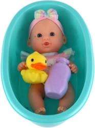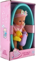 Schattig babypopje in een badje met eendje dat elke kleine liefhebber van badpret zal verrassen. De set bevat praktische accessoires voor bad- en verzorgingsrollenspel. Dankzij het stevige plastic lichaam, het badje met eendje en de eenvoudige reiniging is dit een geweldig cadeau voor kinderen vanaf 3 jaar.