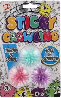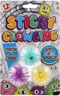 Leuke set van drie kleverige ballen die, wanneer je ze op een glad oppervlak zoals glas of tegels gooit, langzaam naar beneden “kruipen”. De ballen zijn van siliconen materiaal, zijn zacht en kneedbaar en zorgen dankzij het kleverige oppervlak voor veel sensorisch speelplezier. Ideaal voor fidget- en antistress-spel, eenvoudig in gebruik en geschikt voor kinderen vanaf 3 jaar.