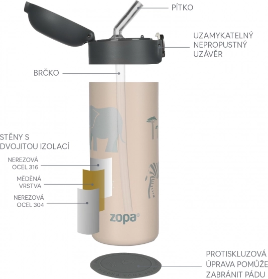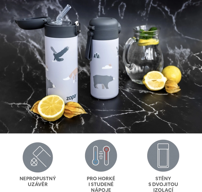 Thermosfles voor dranken met rietje 400 ml, Safari