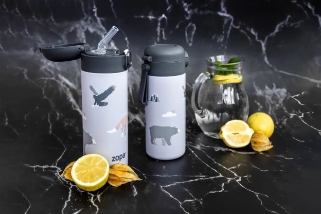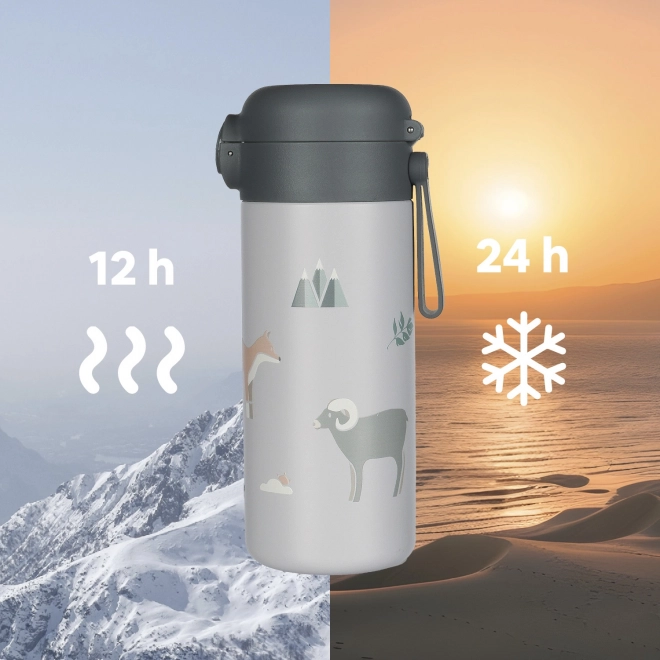 Thermosfles voor dranken met rietje en siliconenhouder 350 ml, Mountains
