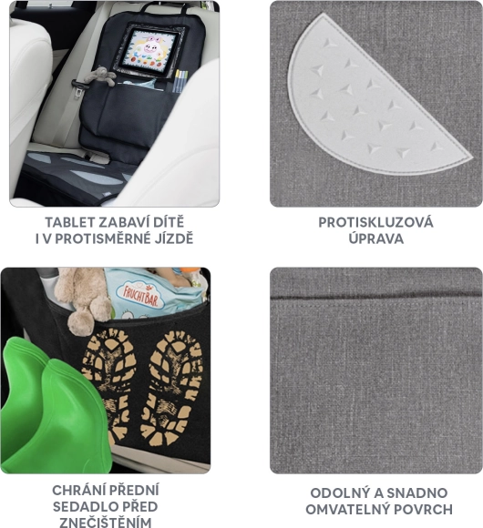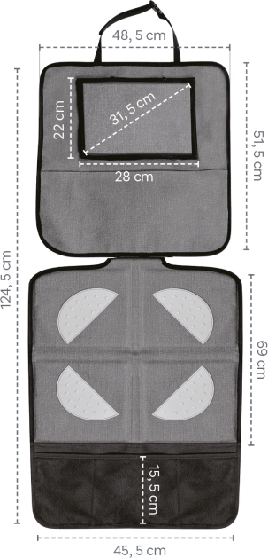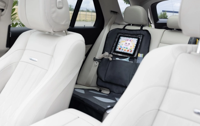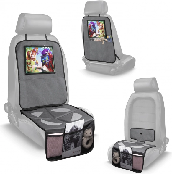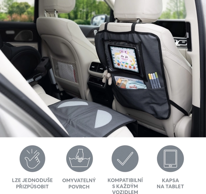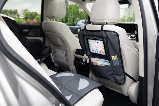 Stoelbeschermer onder autostoeltje met tablettas, wasbaar, grijs