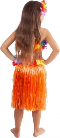 De feloranje rok met bloemenrand zorgt in een oogwenk voor een tropische sfeer op elk feest en optreden. De afbeelding toont een mogelijke styling – de verpakking bevat alleen de rok.