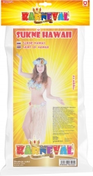 Deze stijlvolle Hawaïaanse rok is de perfecte basis voor een exotische outfit. Hij is gemaakt van dunne kunststof stroken in een natuurlijke tint en in de taille versierd met bonte bloemen, die een opvallend tropisch effect creëren. De lengte van 72 cm zorgt voor een mooie beweging tijdens het dansen en voor comfortabel dragen gedurende het hele evenement.