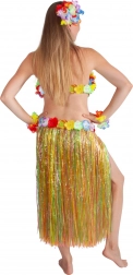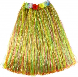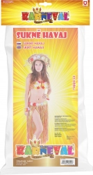 Een geweldige rok in Hawaii-stijl mag in geen enkele damesgarderobe ontbreken! Dit fantastische item is de ideale accessoire voor carnaval of voor de typische Hawaiiaanse dans HULA. De rok, 72 cm lang, is gemaakt van dunne plastic stroken in verschillende kleuren en versierd met kleurrijke bloemblaadjes. Geweldig! Word de ster van het carnavalsfeest met deze Hawaii-rok of stel je complete Hawaii-costuum samen! De verpakking bevat alleen de rok.
