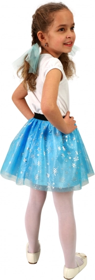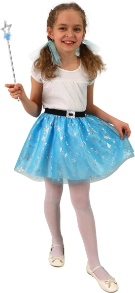 Deze charmante kinder tutu-rok tovert ieder meisje om tot een echte winterprinses. De lichte en luchtige tule in een blauwe tint wordt aangevuld met glinsterende vlokjes die het licht prachtig weerkaatsen. Dankzij de elastische taille is de rok eenvoudig aan te trekken en de hele dag comfortabel te dragen.