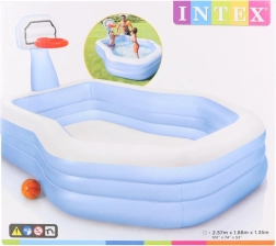 Het speelcentrum met geïntegreerde basketbalring en bal biedt een geweldige combinatie van waterpret en beweging. De royale afmetingen van 257 × 188 × 130 cm en een inhoud van 682 l (bij een waterhoogte van 32 cm) zorgen voor voldoende ruimte voor kinderen vanaf 3 jaar.