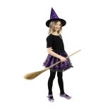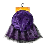 Dit heksenkostuum voor kinderen valt op door het speelse design en het comfortabele draaggevoel. De luchtige tuturok met vleermuisprint heeft een lengte van ongeveer 30 cm en past dankzij de elastische tailleband makkelijk mee met het figuur. De set wordt compleet gemaakt met een puntige hoed in dezelfde stijl die de magische look afmaakt.