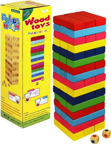 Kleurrijke houten toren is een geweldige keuze voor plezier en ontwikkeling van motorische vaardigheden. Het spel bestaat uit het geleidelijk verwijderen van gekleurde blokken uit de bestaande toren en het stapelen ervan op de top.