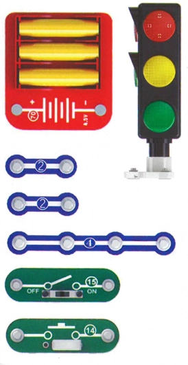 Met deze set kun je eenvoudig een model van een verkeerslicht monteren dat volledig functioneel is en laat zien hoe echte verkeerslichten werken.