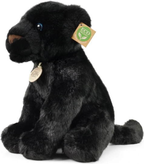 De pluchen panter is met de hand genaaid van hoogwaardige, zachte pluche en ziet er daardoor levensecht uit. Deze zittende panter is 30 cm groot. Door zijn schattige uitstraling is hij een welkome metgezel, niet alleen in elke kinderkamer. Hij maakt deel uit van de exclusieve collectie pluchen speelgoed van RAPPA. We hebben besloten de groene weg te volgen die het milieu zo min mogelijk belast – de ECO-FRIENDLY weg. Wat betekent ECO-FRIENDLY eigenlijk? De vulling van het pluchen speelgoed is gemaakt van gerecyclede PET-flessen. Dit materiaal is volledig veilig, voelt hetzelfde aan als standaard vulling en is volledig gecertificeerd voor de veiligheid, zelfs van de allerkleinsten.