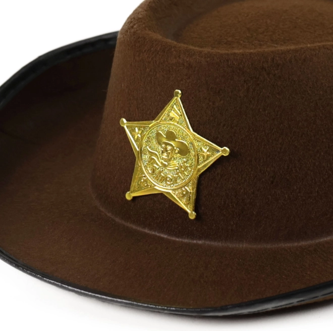 Stijlvolle bruine cowboyhoed voor kinderen geeft elk wildwest-spel de juiste flair. Dankzij de sheriffster krijgen kleine cowboys respect in de stad en beleven ze volop creatief speelplezier. Geschikt voor kinderen vanaf 3 jaar.