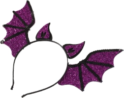 Stijlvolle haarband met vleermuisvleugels, de perfecte accessoire voor carnaval, feestjes en Halloween. Dankzij de glinsterende paarse afwerking en het lichte ontwerp blijft hij uitstekend in het haar zitten en geeft hij elke outfit een opvallend effect. Ideaal voor kinderen vanaf 3 jaar en voor iedereen die wil opvallen met een originele accessoire.