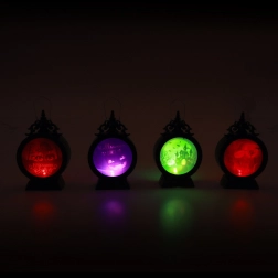 Deze stijlvolle Halloweenlamp is ontworpen als een ronde lantaarnaccent voor interieurdecoratie en feestjes. Na inschakelen wisselt hij automatisch van kleur en creëert een opvallend lichteffect dat je decor extra laat opvallen en elke ruimte een mysterieuze sfeer geeft.