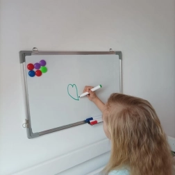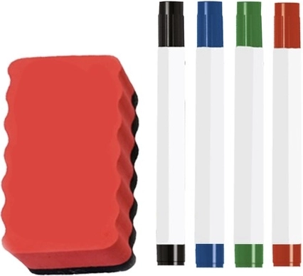 Het bord maakt het mogelijk eenvoudig te schrijven en te wissen met speciale stiften en een magnetische gum die bij de set zijn inbegrepen.